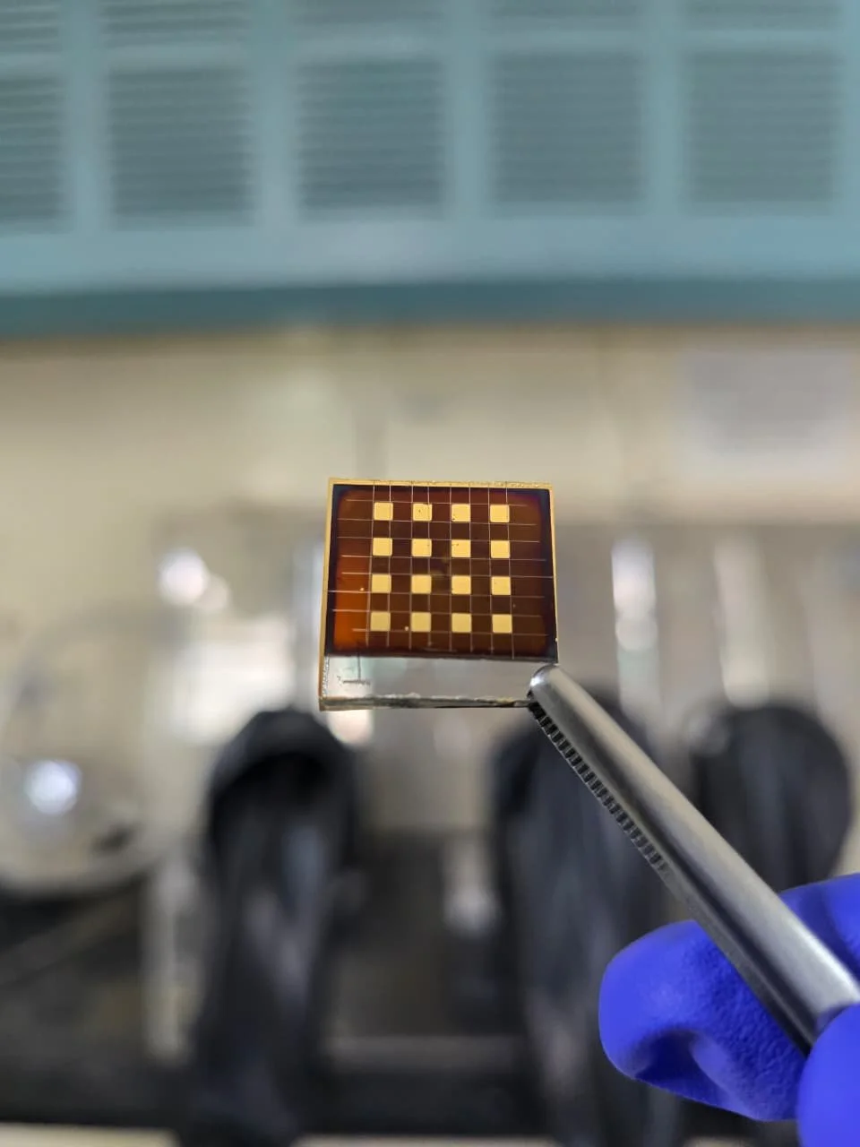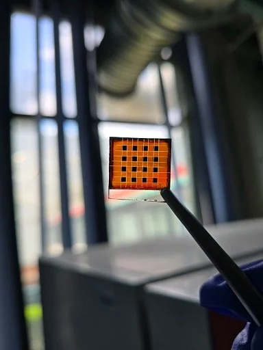 Celda solar formada por capas delgadas de diversos materiales semiconductores, incluida la perovskita, actual línea de investigación del Dr. Arturo Morales y colaboradores.